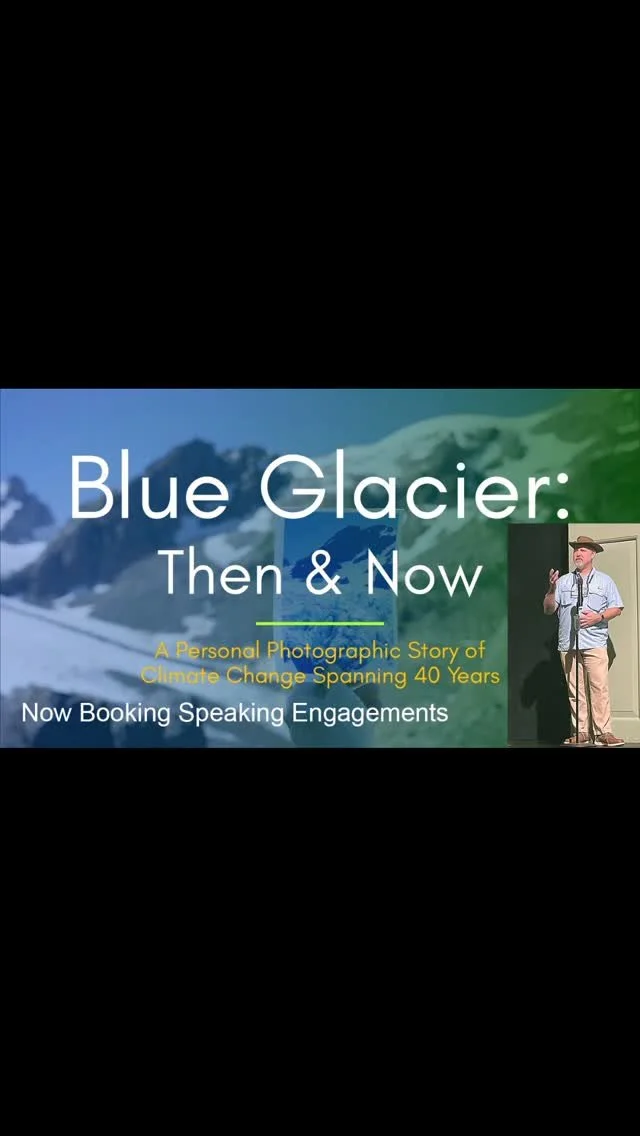 Is your group looking for speakers for upcoming meetings? I can speak on a variety of topics related to my photography and creative journey. I welcome the opportunity to share my story and knowledge with groups of all sizes and ages. Here's a teaser from a talk I gave on my Blue Glacier Then & Now project. #publicspeaking #creativejourney #climatechange #sharingstories