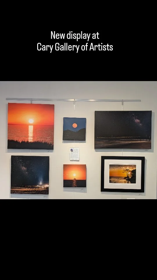 Just put up my new display at @carygalleryofartists Shifting gears from B&W and minimalism to rich colors of sunsets, moon rise, and the Milky Way over Avon Pier.